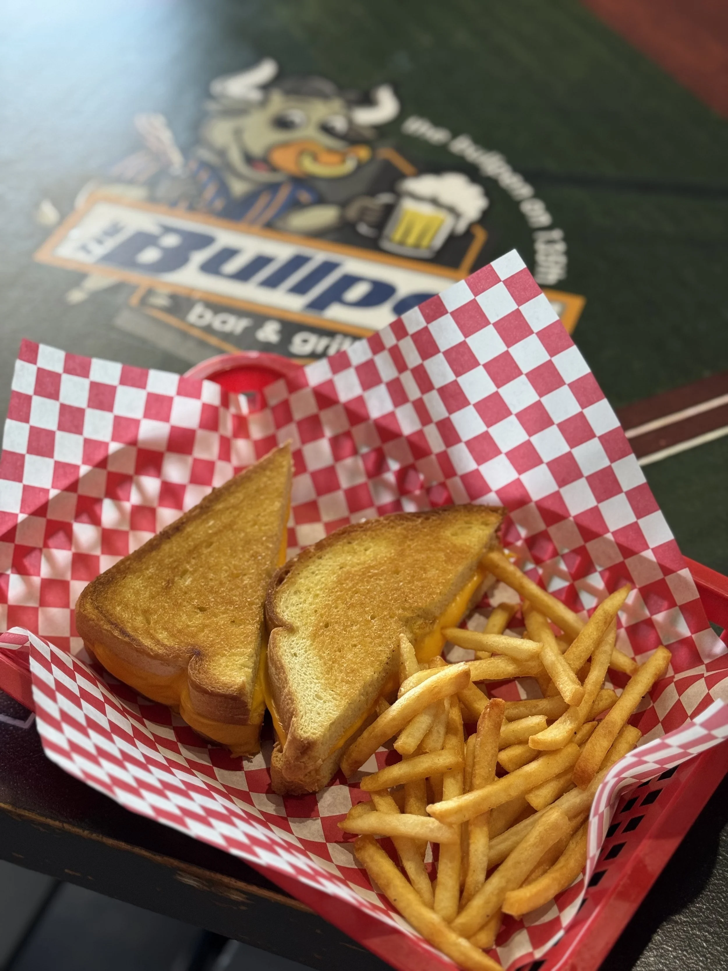 4 all beef burger sliders topped with American cheese, sauteed onions and pickle chips. Add Bacon +$1