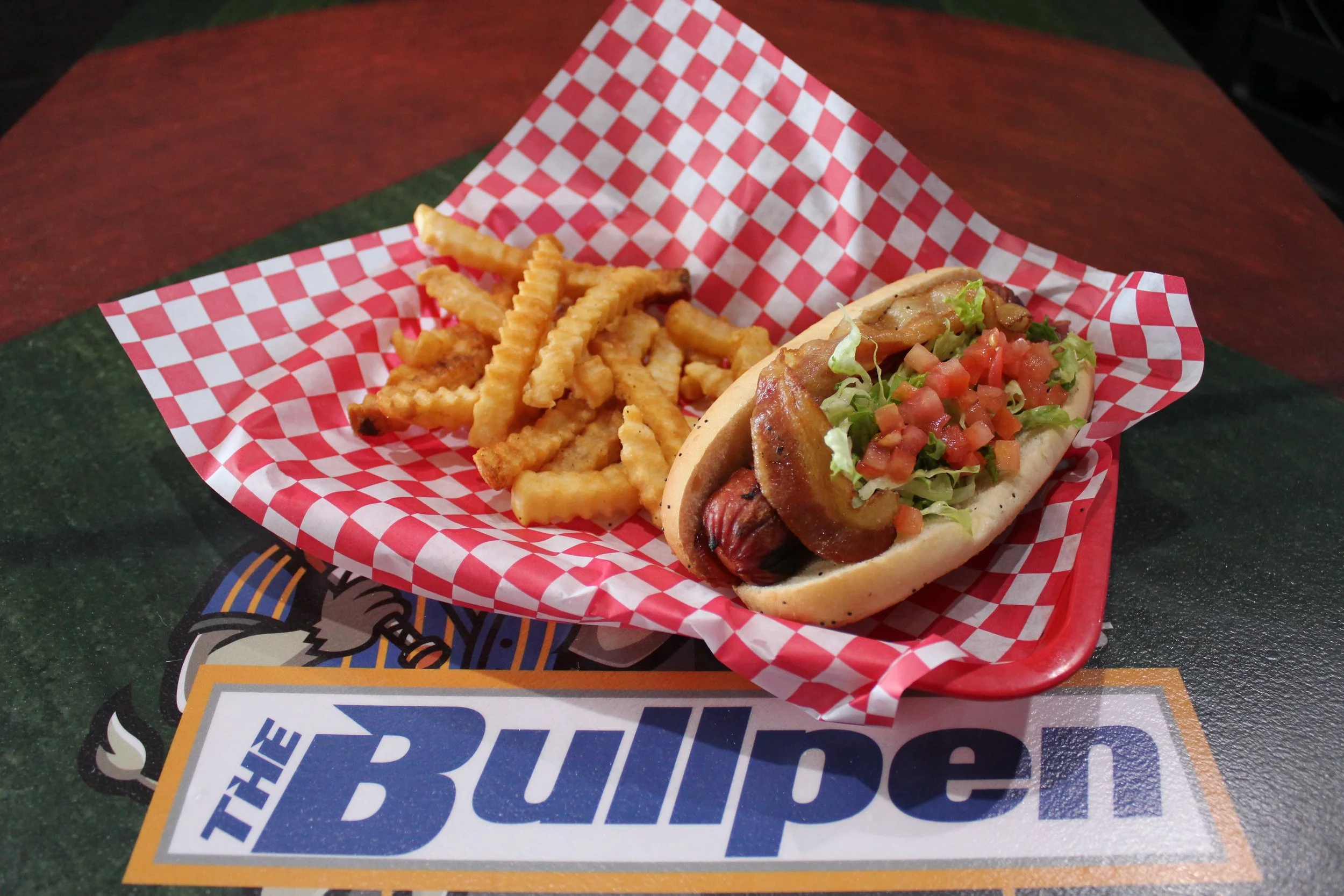 ¼ pound all beef bacon wrapped hot dog, lettuce, tomato, and mayo